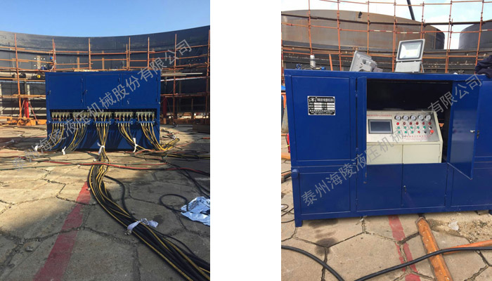 我公司生产制作的成套倒装提升液压设备即储罐安装设备,主要用于协助各种大型储罐、气柜、电厂脱硫塔等钢结构、大型重物的倒装提升焊接安装。这种液压装置具有提升重量大、同步性高、安全性高,自身重量轻、体积小、输出力大、操作方便等优点.