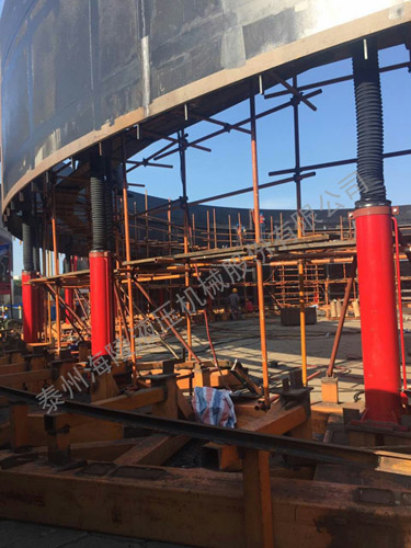 我公司生产制作的成套倒装提升液压设备即储罐安装设备,主要用于协助各种大型储罐、气柜、电厂脱硫塔等钢结构、大型重物的倒装提升焊接安装。