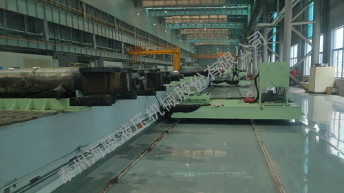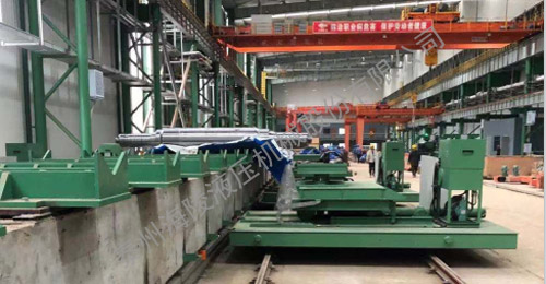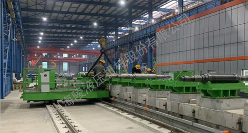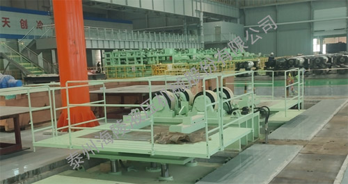 该设备主要用于支撑辊、工作辊和平整辊轴承座的拆卸与装配。具有手动对中功能,可在多个工位拆装轴承座。装配轴承座时,将光辊放置在中间的托辊组上,轴承座放置在两侧小车车的台面上,通过两侧小车车工作台沿Z轴方向的升降、沿Y轴方向的纵移..